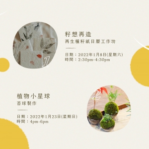 植物不一定要在盆栽裏生長,創作一個植物小星球,組合你喜愛的元素和植物配搭,製成一顆可愛的小苔球。內容包括認識植物、苔球包紮技巧、裝飾配搭設計等等。