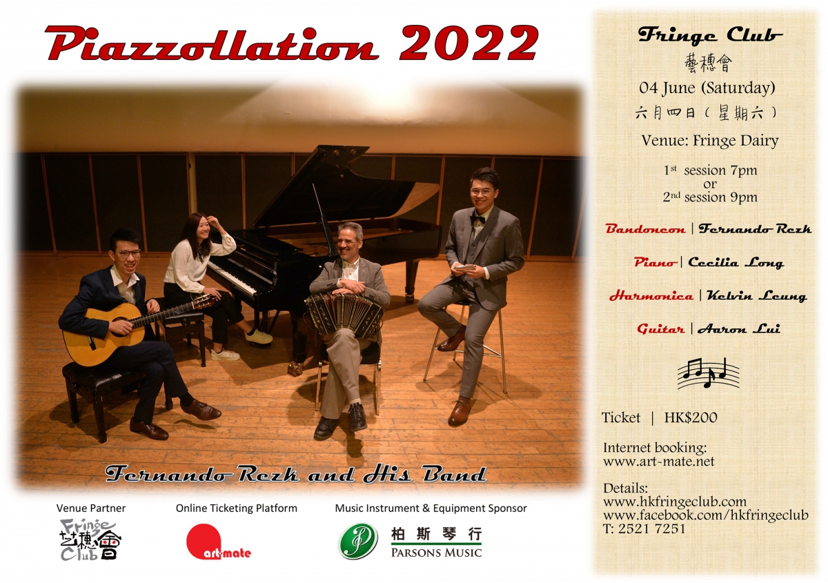 適逢皮亞佐拉誕辰100週年,阿根廷手風琴演奏家Fernando Rezk 將會聯同三位本地樂手包括龍綺欣(鋼琴),梁承熹(口琴)和雷風逸(結他)演出皮亞佐拉和受他影響而誕生的探戈作品,上演一場新舊融和的探戈音樂盛宴。