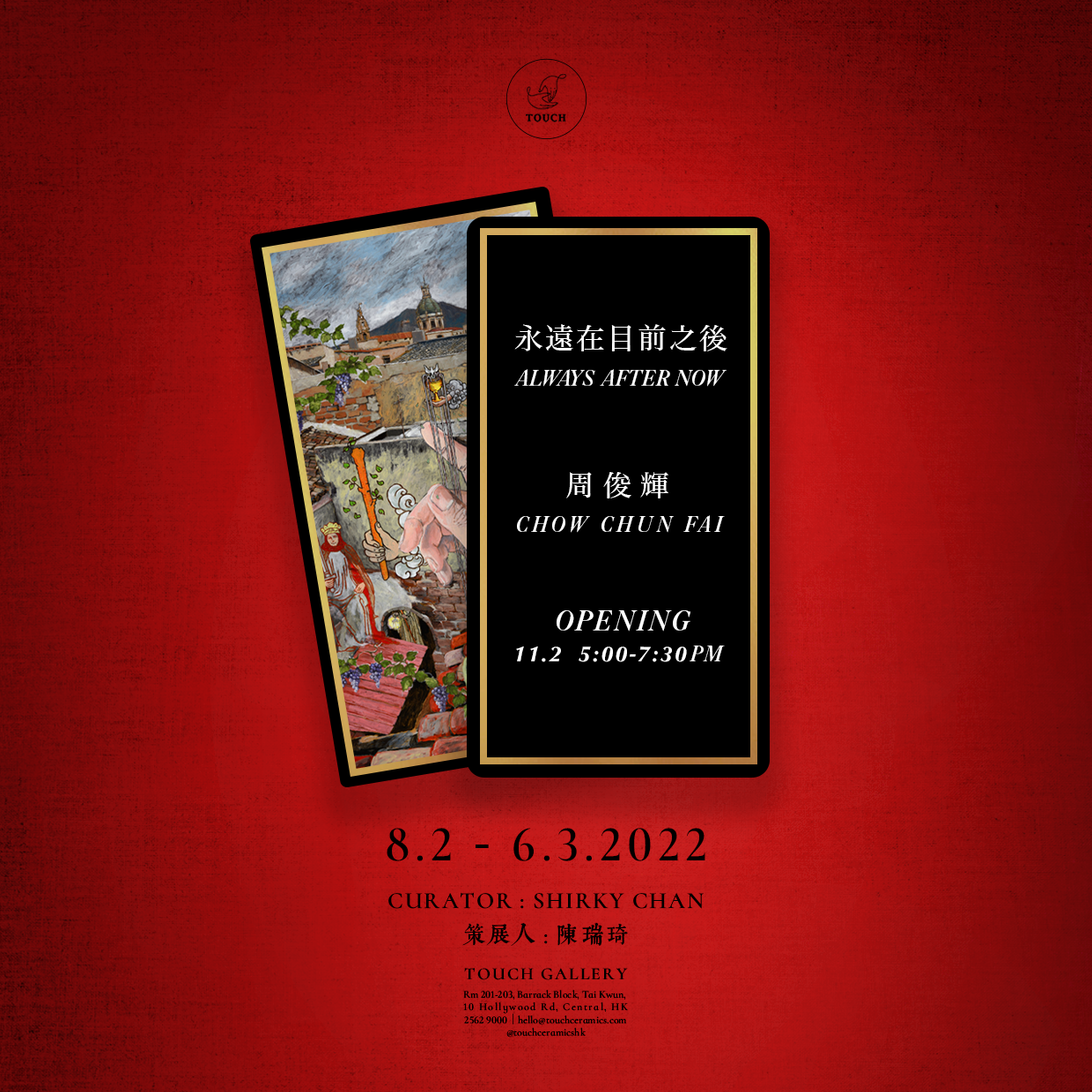 周俊輝於2017年開始塔羅系列。 藝術家故意改變以往的創作模式,讓語義不明的影像主導內容。雖然主動地預設了某種框架,但同時又隨性地讓抽出的塔羅牌圖像帶領自己進入抽離現實的空間。過程就像將不受控制的事物不停地理性化重組及拆解。作品加入大眾熟知的香港景物作為背景,讓觀眾遊弋於藝術家創造的寓言世界。既有懷緬與敍事,又因為塔羅牌的開放性詮釋而打開介乎過去與未來的想像領域。