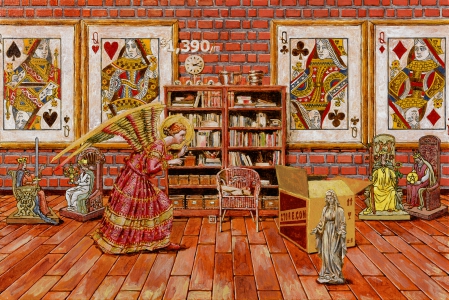 作品引入塔羅圖像的隱喻,引向未知。塔羅牌充滿各種典故符號及多種指涉,是一道連接期盼和現實的橋樑。這系列作品展示出周俊輝對這個多變年代的反應。以理性敘事與隨機組合的創作結果,讓作品意念處於懸浮狀態。當尋找理性與感性的同時,卻發現永遠也找不到絕對的一方。當下社會狀態種種的不確定,塔羅系列或許是藝術家為這時代留下的最佳註腳。