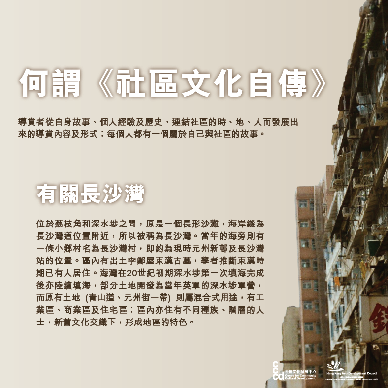 內容:此社區文化自傳自2015年不定期的在長沙灣進行,是次以《網上遊》的形式進行,