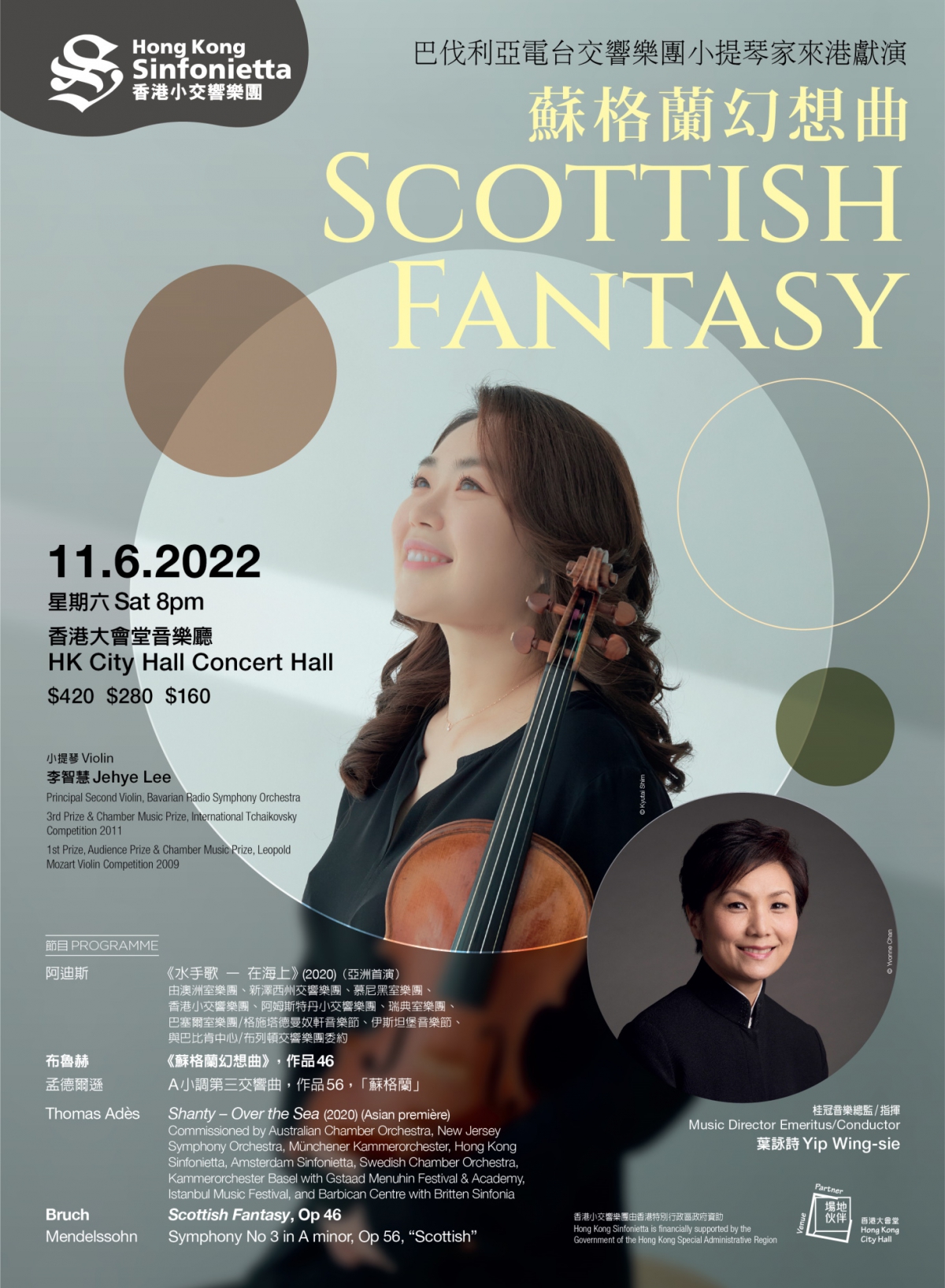 韓裔小提琴家李智慧獲獎無數,包括2011年柴可夫斯基國際大賽銅獎,並且是曼奴軒國際小提琴比賽及西班牙薩拉沙蒂國際小提琴比賽得獎者。她自2014年加入巴伐利亞電台交響樂團擔任第二小提琴首席,同時亦活躍於不同樂團作獨奏演出。這次香港首演,她將與香港小交響樂團桂冠總監葉詠詩合作,演奏布魯赫最著名的小提琴協奏曲,《蘇格蘭幻想曲》。下半場樂團將演奏孟德爾遜第三交響曲 ,「蘇格蘭」,以音符帶您遨遊蘇格蘭的丘陵平原。