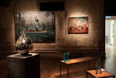 是次展覽亦包括了藝穗會由 1982 年至今的委約作品及收藏品。此外,也展出了蛙⺩的近作,我們曾於 2011 年威尼斯雙年展為他策劃了一個個展。「邊渡四十年」更是慶祝藝穗會在過去 40 年間為保育舊牛奶公司倉庫所作出的努力及其轉變,造就了今天的藝穗會。