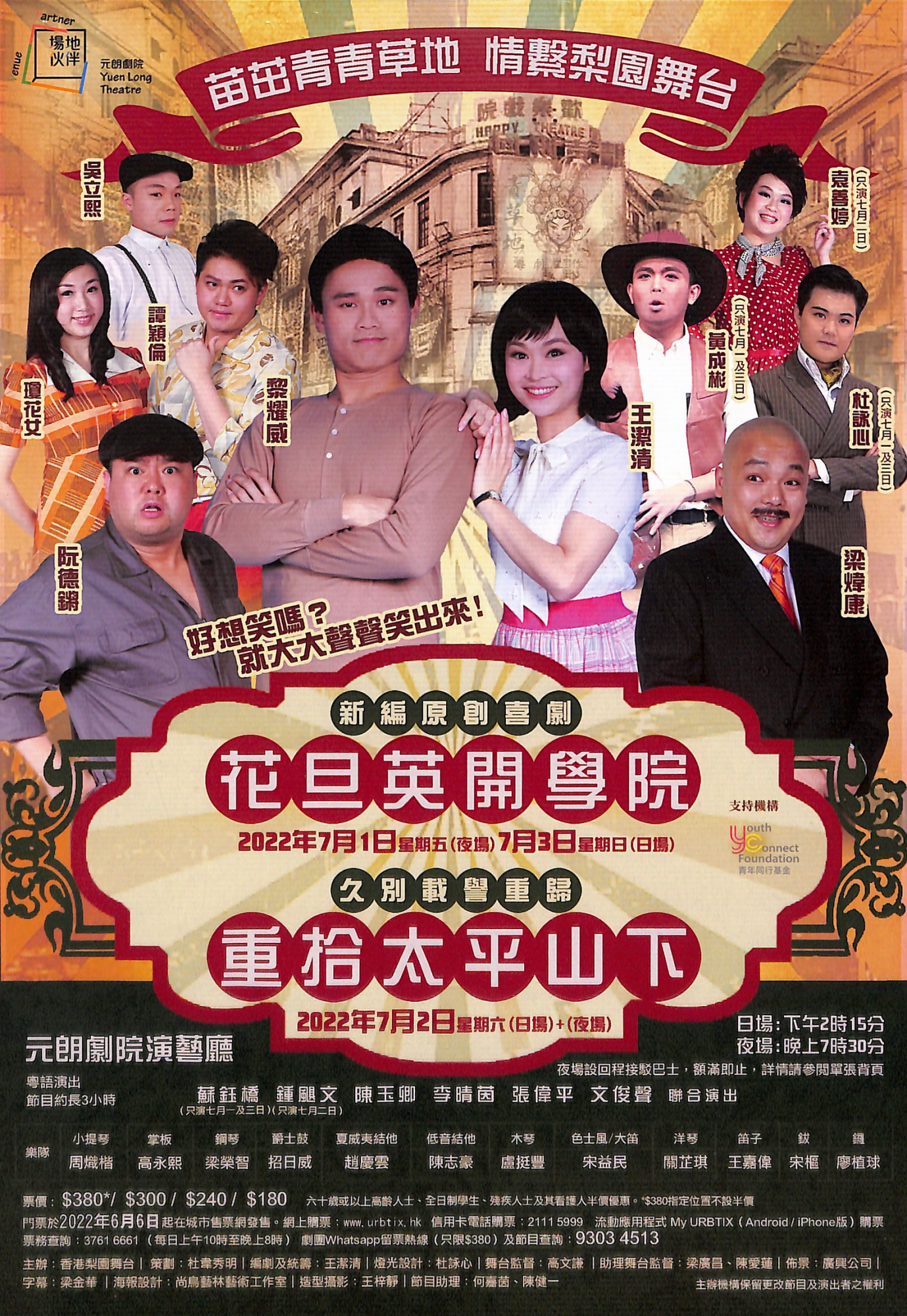 取材自懷舊電影《太平山下》,以上世紀60年代初的香港平民生活為背景。主要講述太平街一幢舊樓內住著的一群小租客與包租婆間發生的樁樁趣事,也因為業主加租而衍生後來的故事情節。本劇把原有電影部份橋段重新改編,加以創作、整理及分場,透過不同角色的互動把整個劇本串連起來。包租婆(梁煒康反串)與阿綿(阮德鏘飾)和阿好(王潔清飾)在粥舖鬥氣連番;黎耀威飾花旦英,演繹男花旦,舉手投足已令人捧腹大笑,其中花旦英收徒及老爺請女工兩場,觀眾或會感覺他才是這齣戲的女主角!