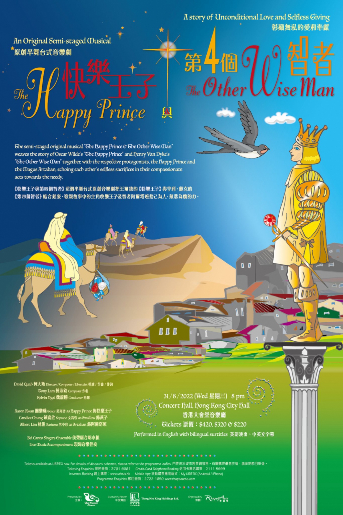 《快樂王子與第四個智者》這個半舞台式原創音樂劇把王爾德的《快樂王子》與亨利‧戴克的《第四個智者》結合起來,歌頌故事中的主角快樂王子及智者阿爾塔班捨己為人、慈悲為懷的心。