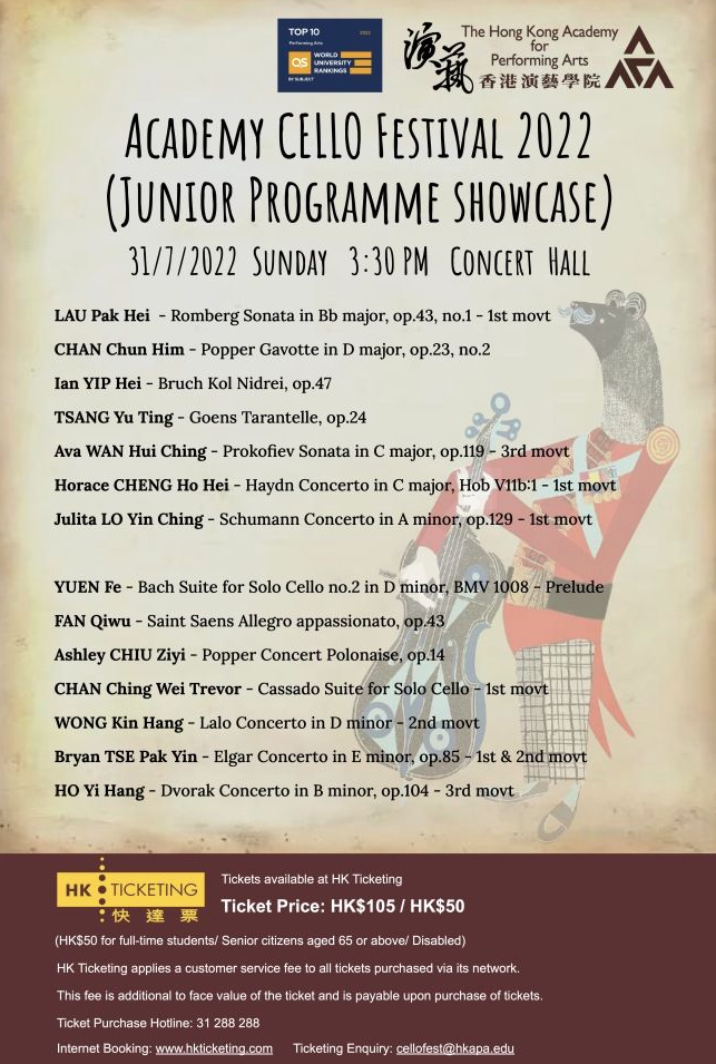 演藝學院大提琴手旨在為聽眾帶來藝術的享受,望演藝學院大提琴音樂節成為新的傳統,讓專業技能、音樂享受和人文關懷得以傳承。