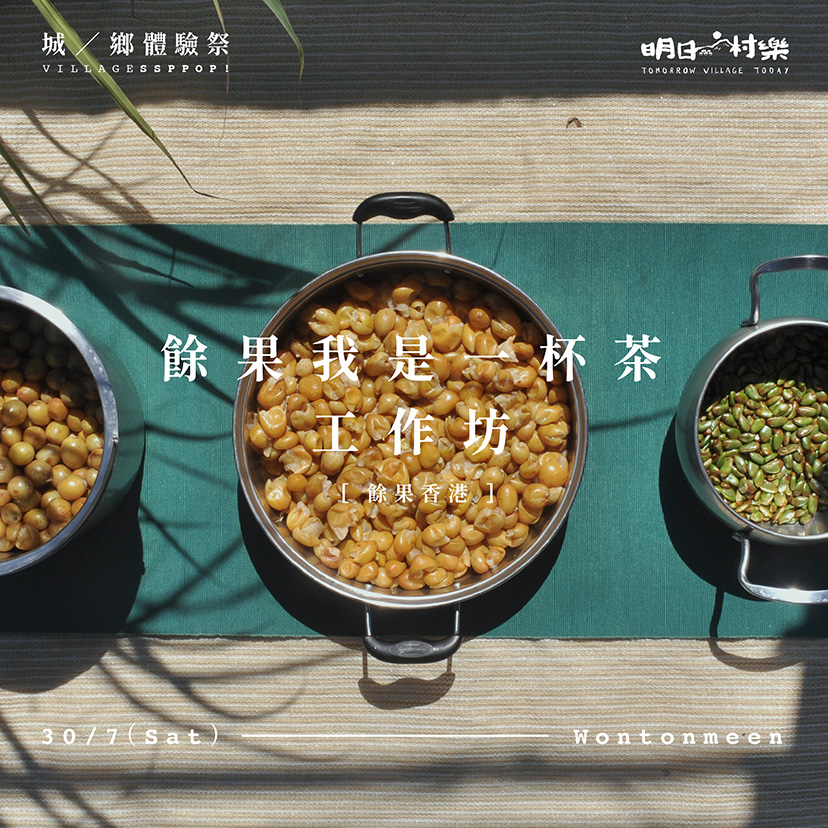 我們大多習慣了超市裏面陳列著滿目完美的生果,或許忽略了樸實的本地生果。事實上,本地生果出產只佔港人食用果量的千分之一,尤其在港九兩地更鮮見本地果的蹤影。今次活動會將蛤塘和荔枝窩的生果帶到市區、調製以本地果為主調的發酵茶(Kombucha),此外還有農產背後的人物和鄉村故事 -不論是回鄉復村的、孕育生態的、自給自足的 — 餘果是一杯茶,這杯茶裏是怎樣的故事?