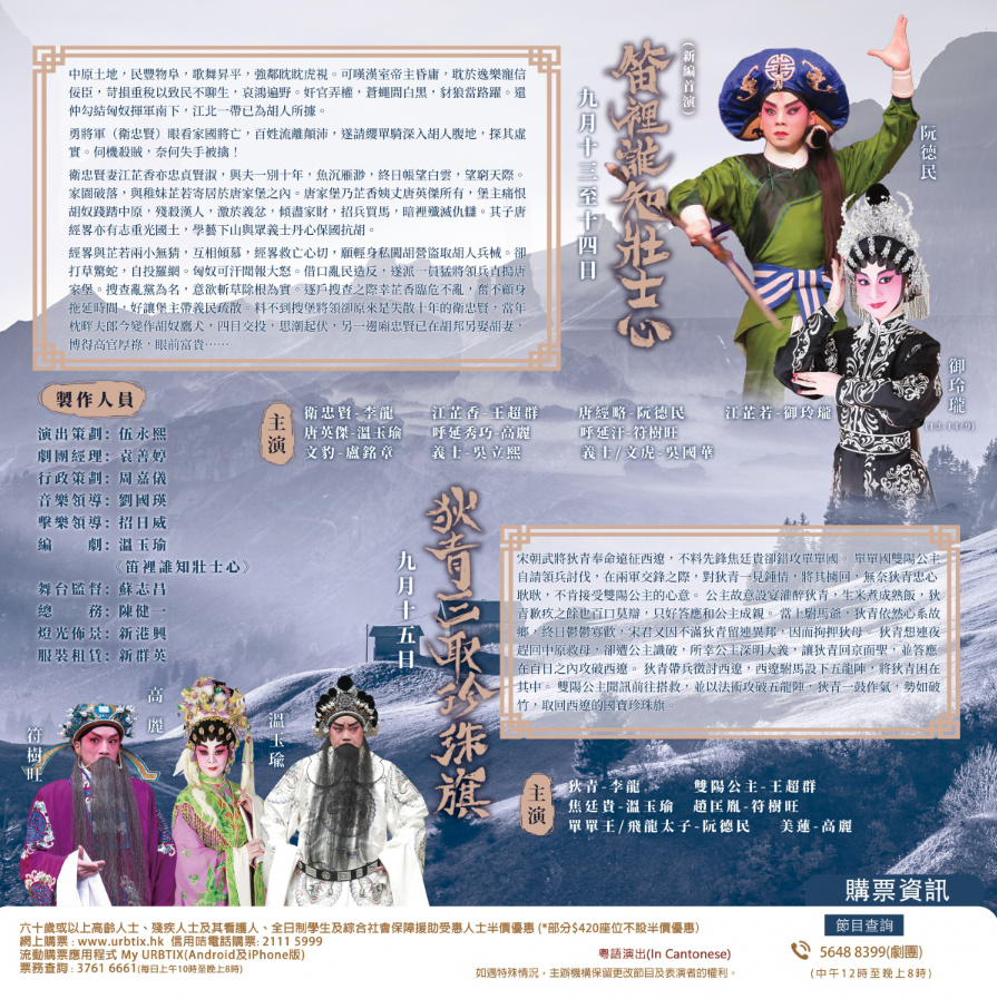 更多詳情:https://www.cantoneseopera.hk/chi/show/details/【龍威劇團】《笛裡誰知壯士心》《狄青三取珍珠旗》