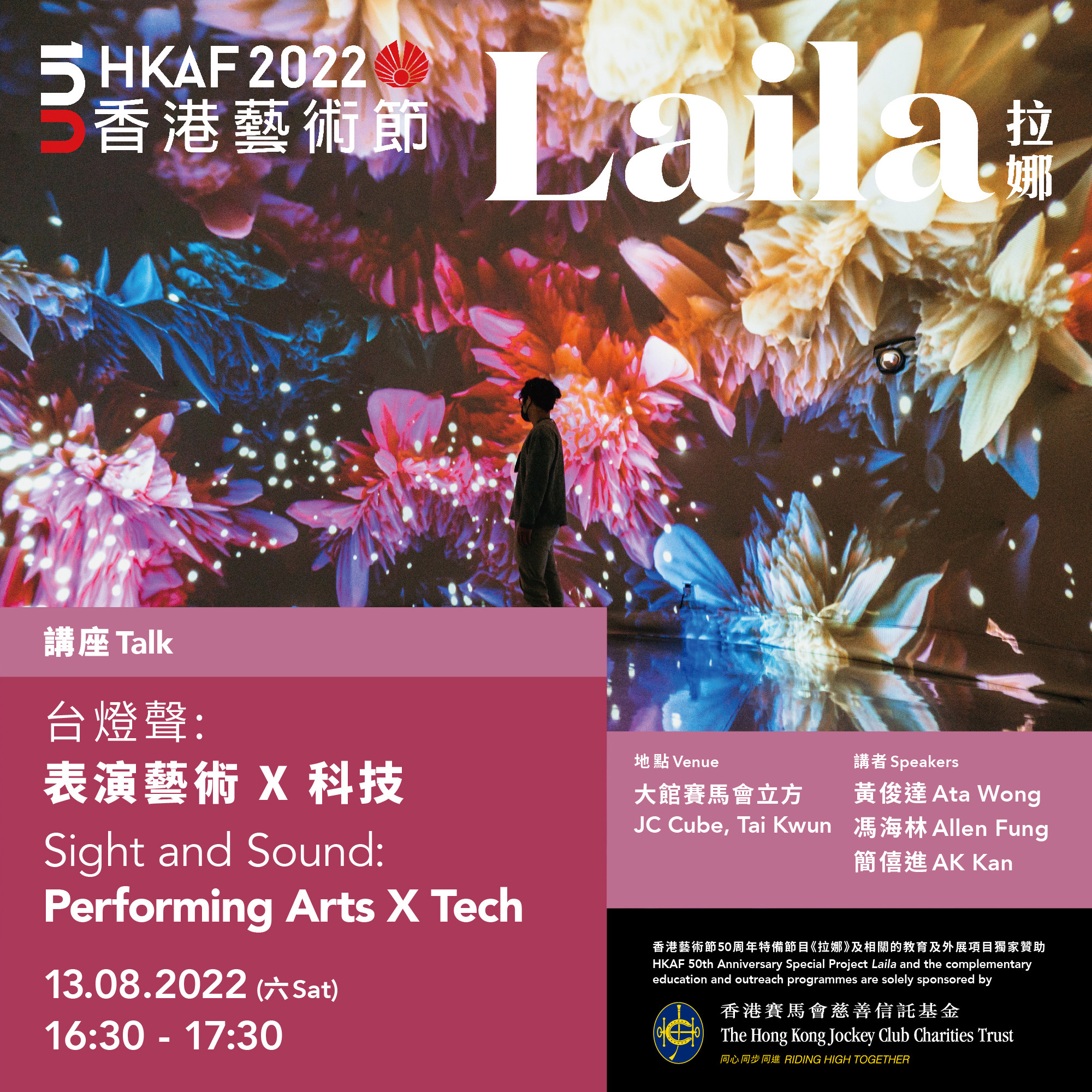 香港藝術節五十周年特備節目《拉娜》,由藝術節與芬蘭國家歌劇院及芭蕾舞團 ( 歌劇院 ) 聯合製作,連同一系列悉心設計的外展教育活動,由香港賽馬會慈善信託基金獨家贊助。