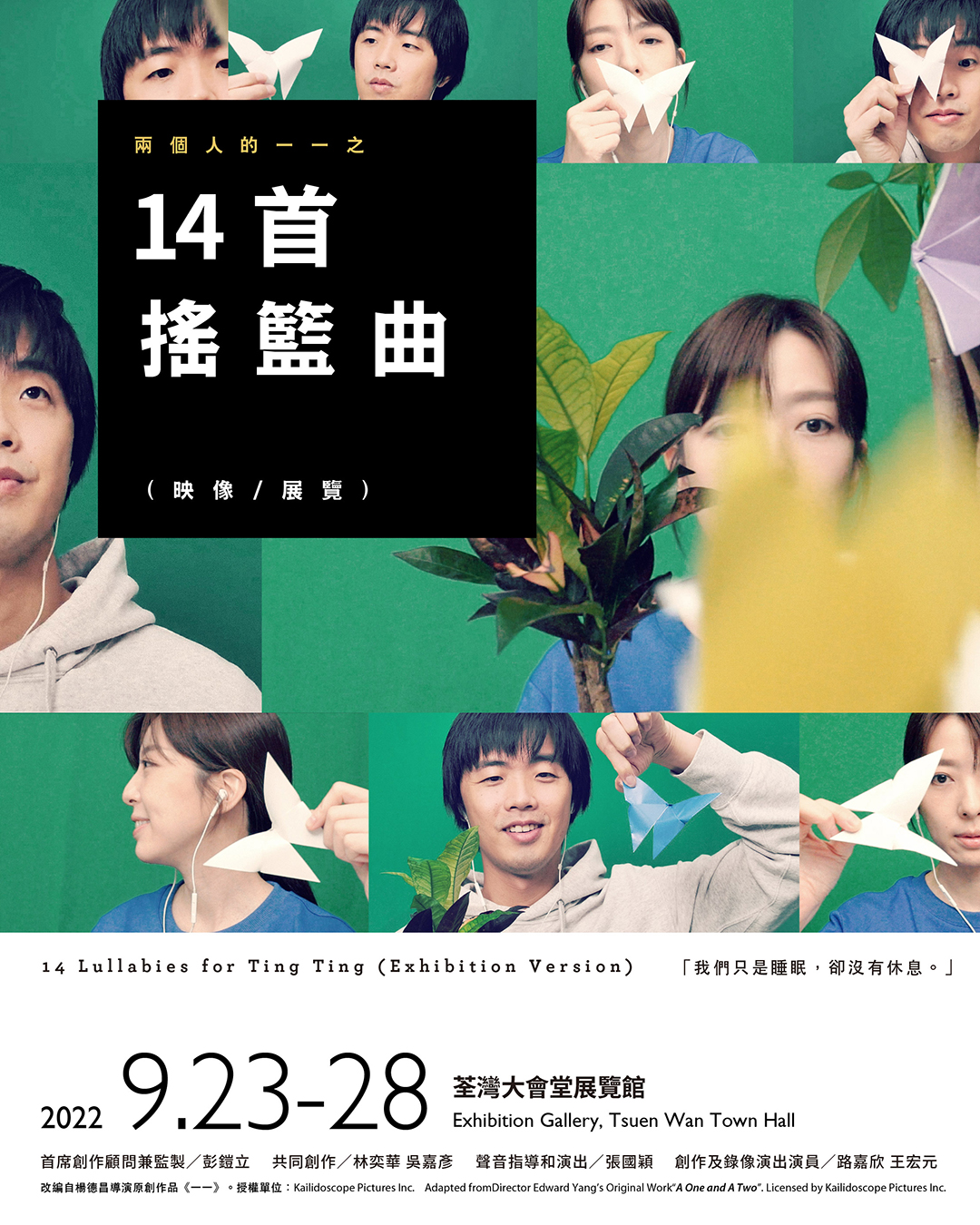 從劇院到展覽館,來自電影《一一》的靈感和回應疫情時代進行舞台劇改編的創作歷程交匯演變所誕生的映像裝置藝術作品。疫情下,人在台北的路嘉欣與王宏元,與香港演員張國穎以及非常林奕華團隊將原本時空的限制,變成實驗的場域,誕生7個最現實的狂想與7個最超現實的冥想,共構出14個視覺與聽覺的小宇宙——由《一個人的一一》的微型舞台概念延伸,荃灣大會堂展覽館化身為給現代都市人「進入夢境」的鬧市搖籃。