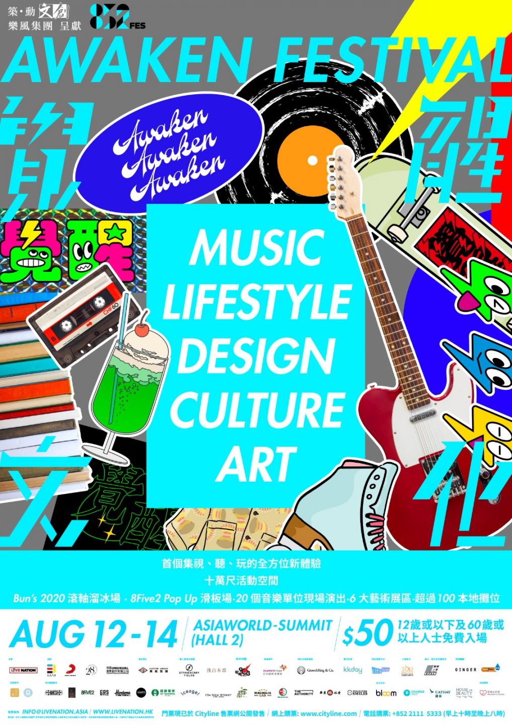 以香港專屬區碼為名,「852FES」的主題為「Awaken Festival覺醒文化」,集合力量喚醒本地文化。佔地10萬呎,「852FES」涵蓋四大元素,包括:本地音樂、復刻文化、創意藝術、生活風格,結合懷舊及潮流遊樂設施、攤位市集、原創品牌、手藝工作室及四個不同藝術展區;多個表演單位於不同時段輪流演出,一起擁抱本地文化。