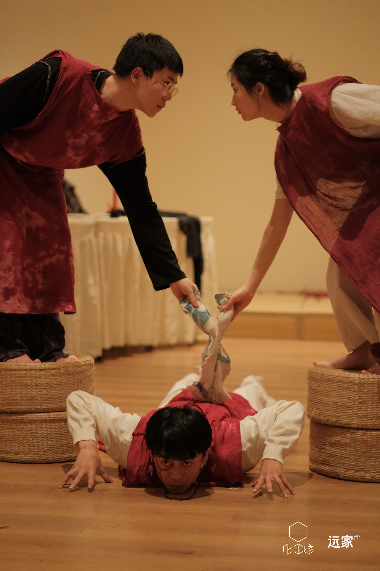 並且,它們去了沒有劇院的地方做劇場。延續著格洛托夫斯基曾把“藝術作為座駕”的理想,王維在製作團隊化工場的如一支持下,與2020年《紀念日:吹!把風箏吹起來! 》的四位演員,繼續在2022年的《幾時兔子乖乖》中,推進對詩意與政治劇場的探索,實踐著他們將“劇場作為隧道,通向良心和真理”的理想。為了讓劇場真正“公眾化”,他們將整個創作過程和首演、路演都放在四川的鄉村 ( 蒲江明月村 ),讓鮮有機會踏入劇院的當地村民能便捷看戲。