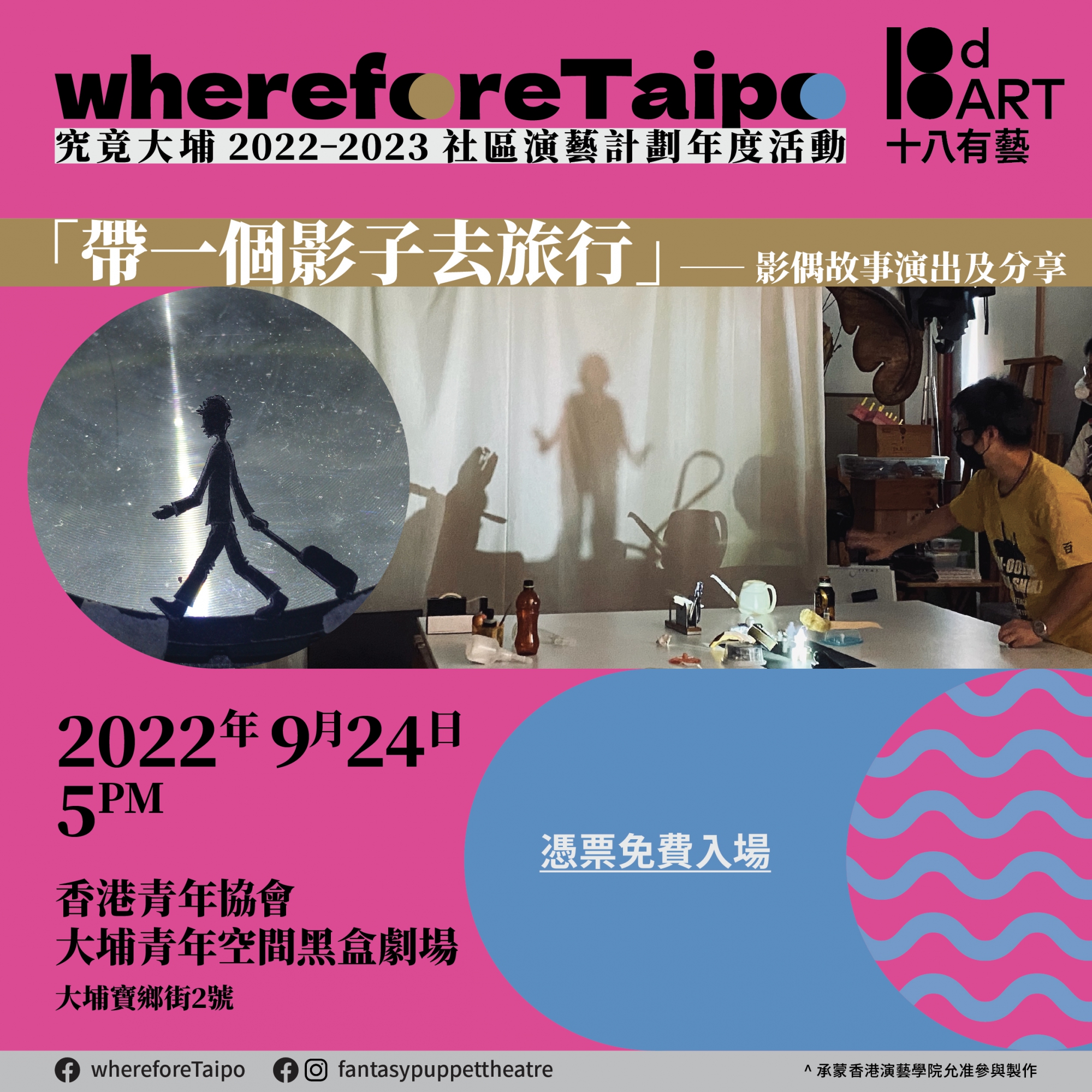 * 「究竟大埔 」2022-2023 社區演藝計劃年度活動* 所有使用者/參加者在進入場館前,必須佩戴自備的口罩,及須符合「疫苗通行證」實施的相關要求,並利用手機掃描「安心出行」二維碼,豁免人士除外。
