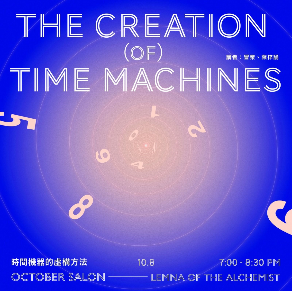 十九世紀末,H.G.威爾斯推出作品《時間機器》,時間操作自此成為了虛構作品的一大主題,在類型小說及影視作品中大放異彩。為何人類祈望穿梭時空?時間操作究竟揭示了什麼渴求?是次分享會,冒業及葉梓誦將討論一些當代虛構作品操作時間的方式,探究時間旅行的多種模態。冒業推理小說、科幻小說作家,第19屆台灣推理作家協會徵文獎首獎得主。 葉梓誦文藝評論雜誌《Sample 樣本》總編輯。