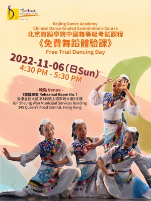 香港舞蹈團將於11月6日舉行北京舞蹈學院中國舞等級考試課程《免費舞蹈體驗課》!
