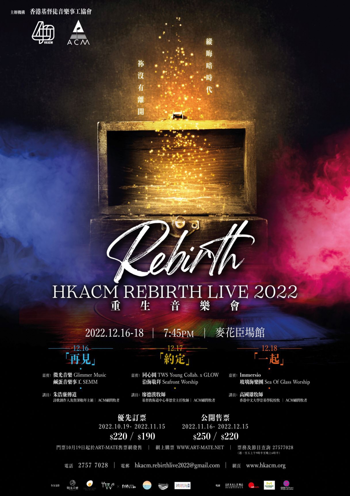 踏入第40個年頭,ACM盼望與信徒一同重生、更新,故以「REBIRTH」( 重生 ) 為題,於12月16-18日假麥花臣場館舉行一連三場聚會。