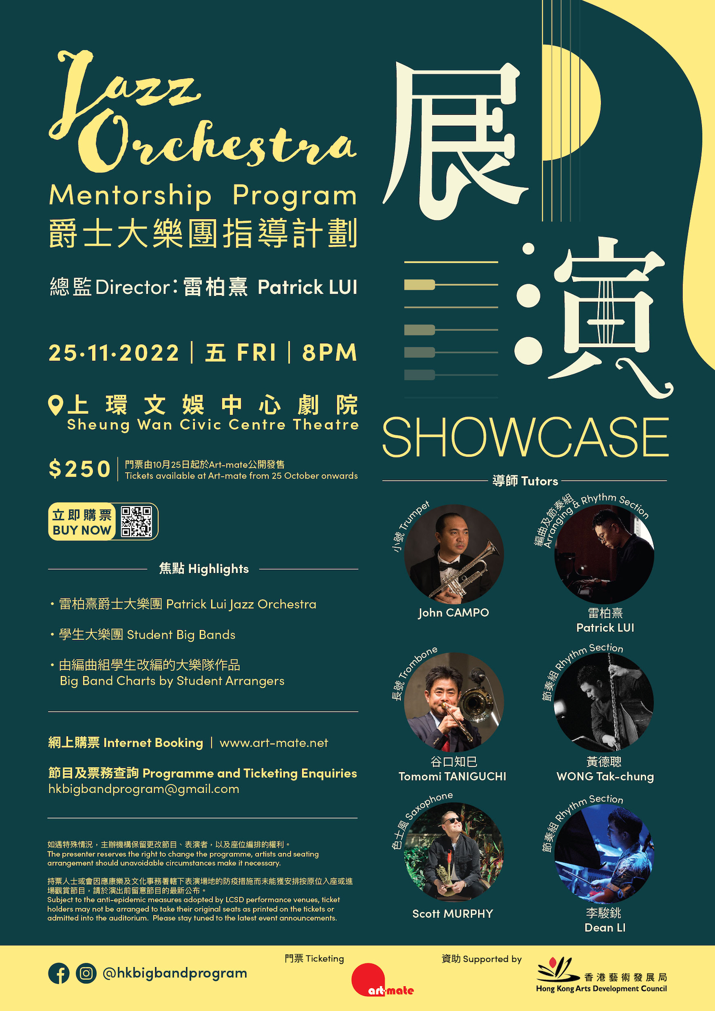 爵士大樂團指導計劃由香港藝術發展局資助。