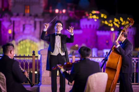夜幕低垂,華麗宏偉的奇妙夢想城堡亮起璀璨閃亮 的燈光,3 個周五及周六晚上,由 7 時半至 8 時 15 分,知名音樂家聯同香港迪士尼樂園的樂手,演奏 不同音樂風格的音樂會。在奇妙夢想城堡前扣人心弦的音樂,不單有米奇與好友參與演出,米奇將會 以全新造型亮相,高飛亦會登台打鼓助興!