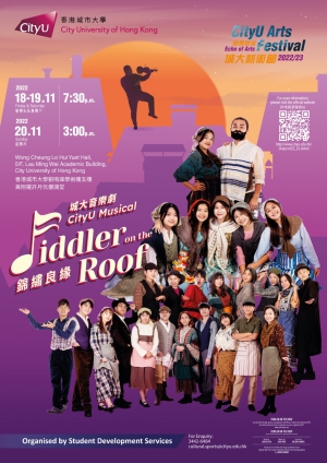 城大年度音樂劇載譽歸來!城大同學感動呈獻,百老匯經典音樂劇《錦繡良緣》!在時代洪流下面臨新觀念的衝擊,女兒勇於追求自己的終生幸福之際,父親在百年傳統與時代變遷之間又該如何決擇? 矛盾與掙扎背後埋藏著愛與希望。城大同學籌備逾半年,將躍動舞台,𢹂手重現這齣滿載笑聲與溫馨的音樂劇。