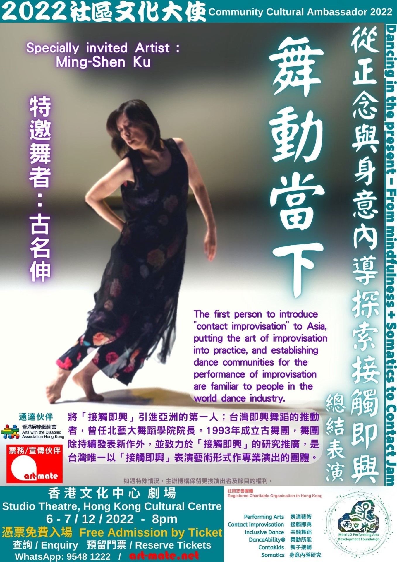 歡迎 身體不同能力人士 入場欣賞。 是次演出提供「藝術通達配套」包括:粵語口述影像;手語傳譯;自在劇場;額外輪椅位;歡迎導盲犬。