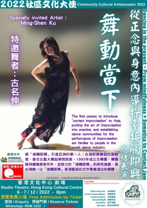 讓市民大眾能從意念至身體去調整自我,以「接觸即興」 ( Contact Improvisation ) 這種舞蹈模式,打破市民大眾對「舞蹈藝術遙不可及」的固有印象。 活動着重「於當下發掘新的可能性」,在不斷尋求突破的同時,亦能讓所有參與者以第一身體驗和探索,以另一種形式去學習運用身體,從而達致調整身心健康及藝術推廣的效果。