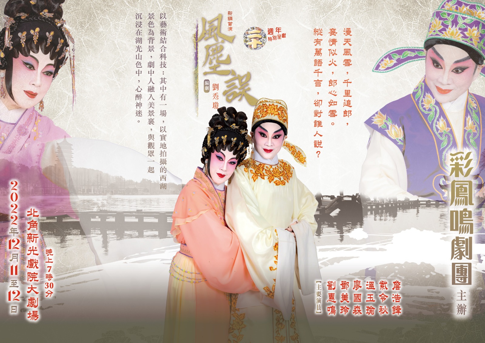 二十週年特別呈獻,新編唱情粵劇,以藝術結合科技:其中一場,以實地拍攝杭州西湖為背景,劇中人融入美景裏,與觀眾一起沉浸在湖光山色中,心醉神迷。