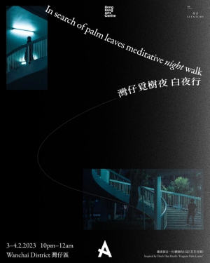繼《灣仔覓樹夜》第一部的讀書暨音樂會後,香言繼續與不同界別的藝術家合作,以一行禪師的日記《芬芳貝葉》為靈感,揉合音樂、舞蹈和香氣等元素,走進灣仔以創作為你導航,展開一場城市夜行。