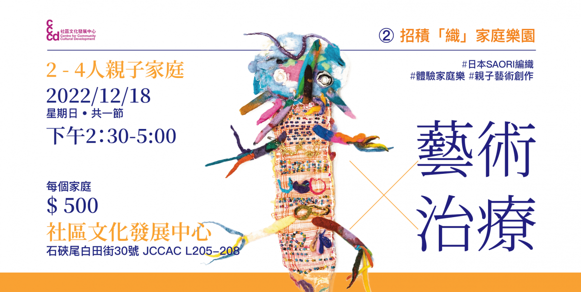 目標:糅合日本 SAORI 編織及藝術治療的力量,在家庭樂園中一起重建家庭寶箱,讓親子之間重現喜樂、平和及關愛之正能量。內容:在輕鬆無壓力的氣氛下,透過親子遊戲、編織/藝術創作去彼此分享、學習及體驗家庭樂,共同發掘及展現出每個家庭之招積獨特寶藏。名額有限,儘早報名。