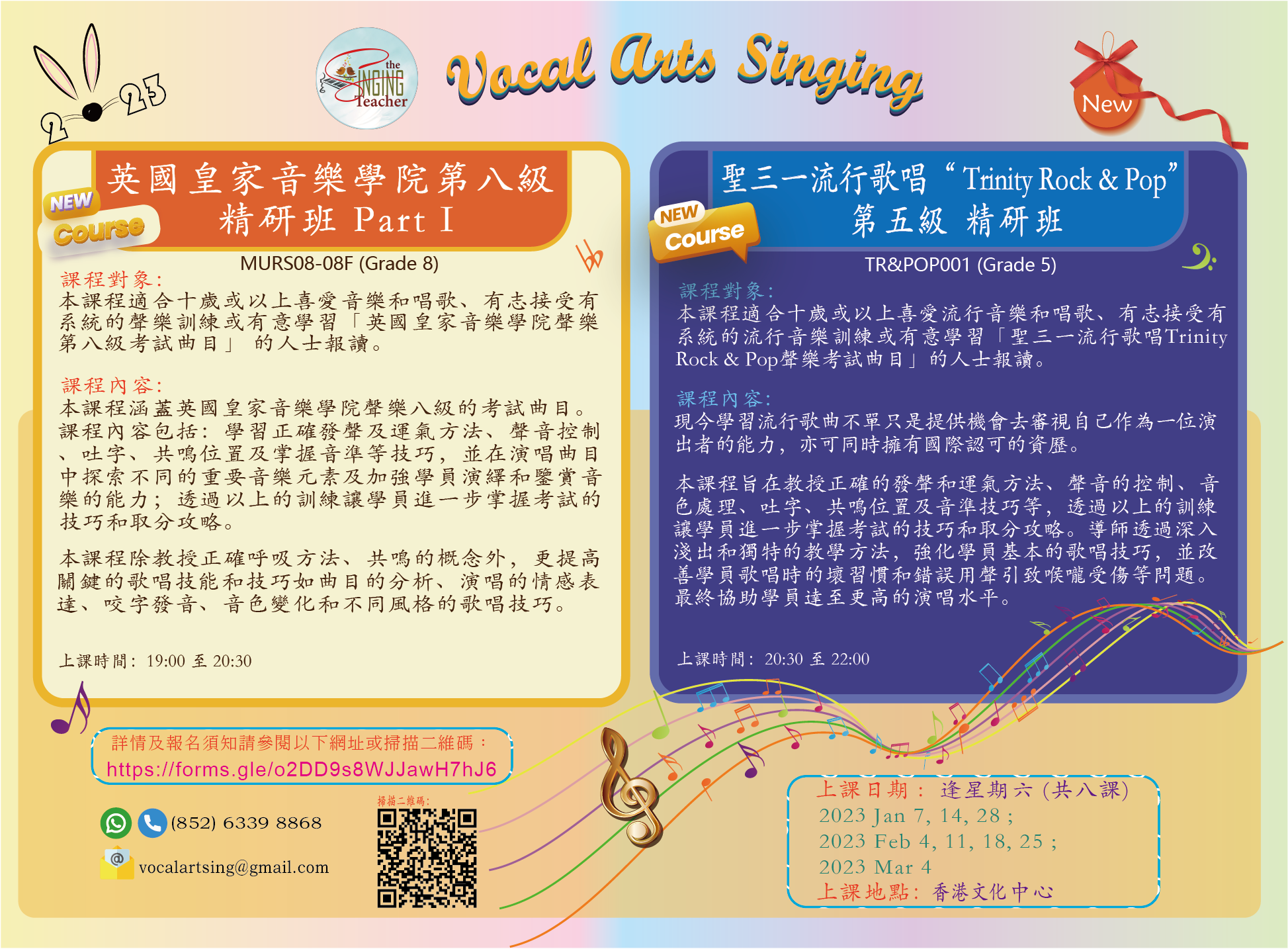 本課程涵蓋英國皇家音樂學院聲樂八級的考試曲目。