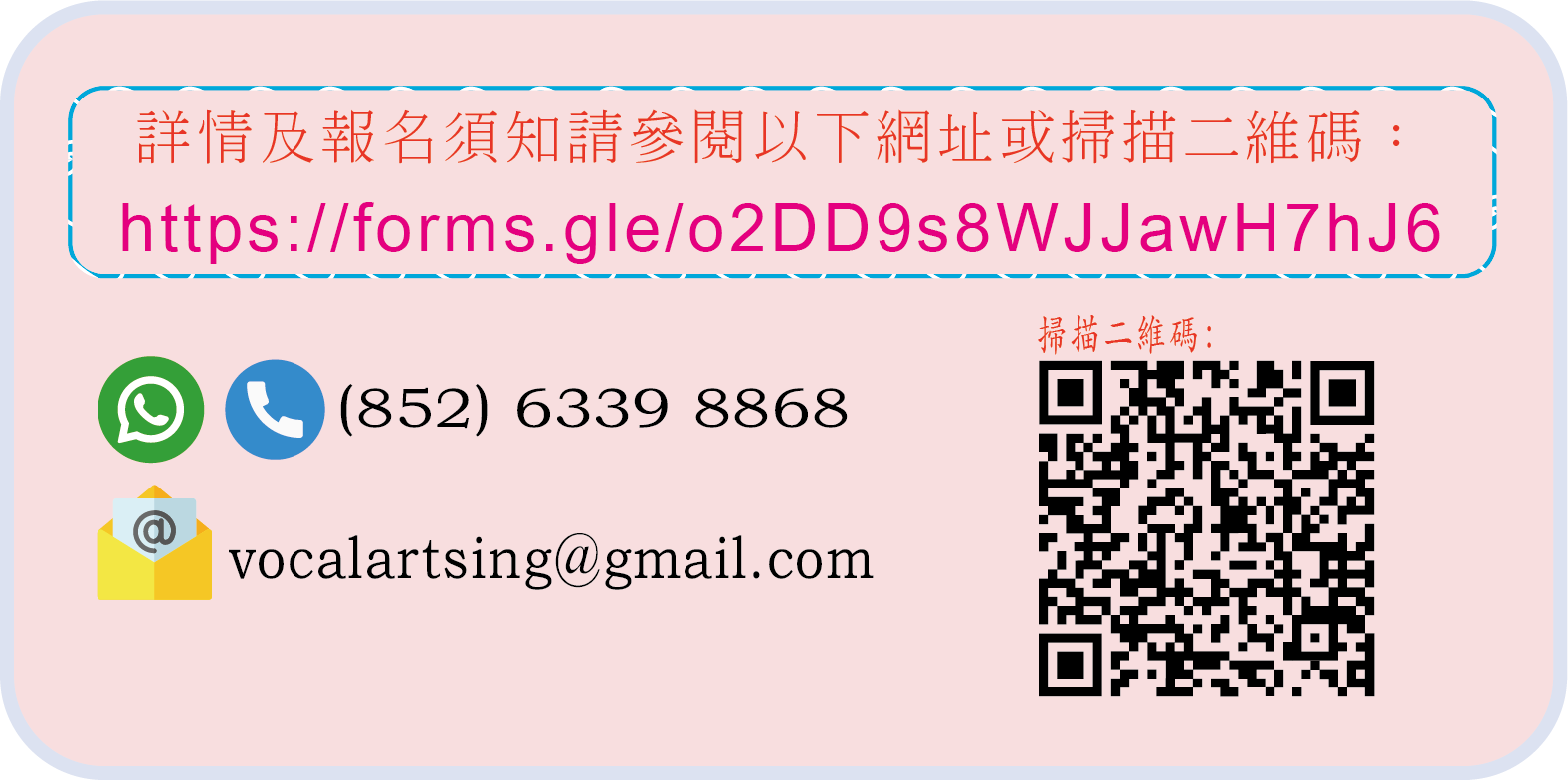 本課程適合十歲或以上喜愛音樂和唱歌、有志接受有系統的聲樂訓練或有意學習「英國皇家音樂學院聲樂第八級考試曲目」 的人士報讀。