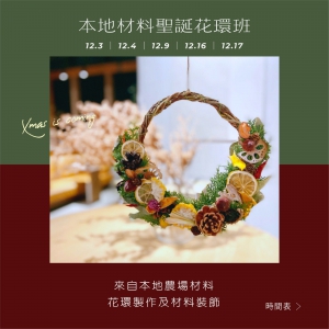 我們其中一個理念就是「把香港大自然材料進行創作」,在這個聖誕花環工作坊,我們利用香港本地農場收集的花材及種子等材料,一同製作花環及教導裝飾技巧。製成一個既有風格,又有香港特色的花環!