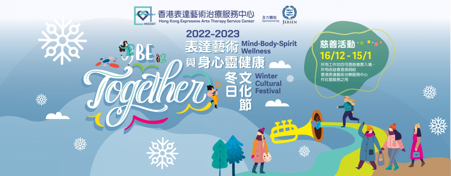 藝術係我哋嘅好夥伴,不論你處於生命中邊個狀態、邊個階段,不論你感到獨單、寂寞抑或凍⋯⋯ 藝術創作都可以畀我哋一個情緒出口,為生活找尋新嘅角度。事隔一年半,由香港表達藝術治療服務中心主辦嘅《Be Together 身心靈健康冬日文化節 2022-2023》終於返嚟啦!我們將聯同一眾藝術文化界嘅好友們為大家帶來新奇、好玩、治癒嘅藝術活動,再次於藝術中陪伴大家過聖誕、迎新年!!!