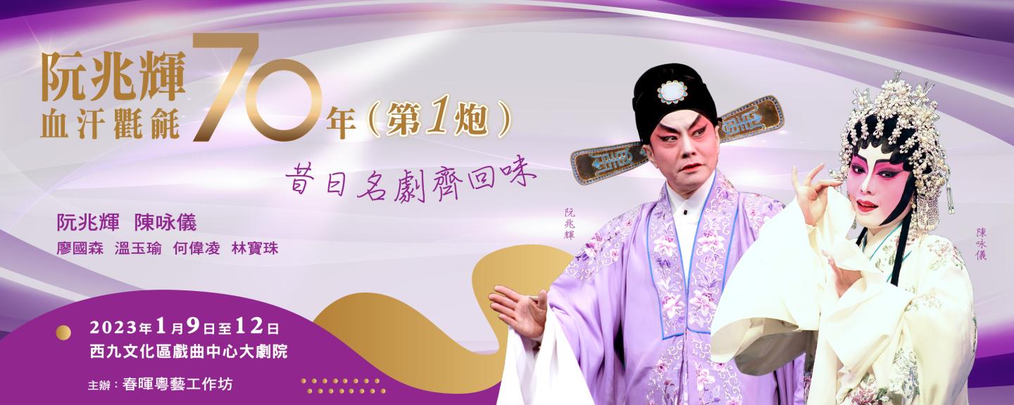 現今表演藝術圈內,成就卓越而藝術生命長久,至今依然活躍於舞台的殿堂級表演藝術家,寥寥無幾。當中有大家熟悉的阮兆輝教授(輝哥),風采橫跨多代的影、視、梨園,他是香港引以為傲的傳統文化藝術典範,蜚聲世界的中國戲曲大師。2023年輝哥從藝70年,在這難得的隆重時刻,春暉粵藝工作坊正策劃多項的慶祝活動,是次演出是「阮兆輝血汗氍毹70年」慶祝活動的第1炮。