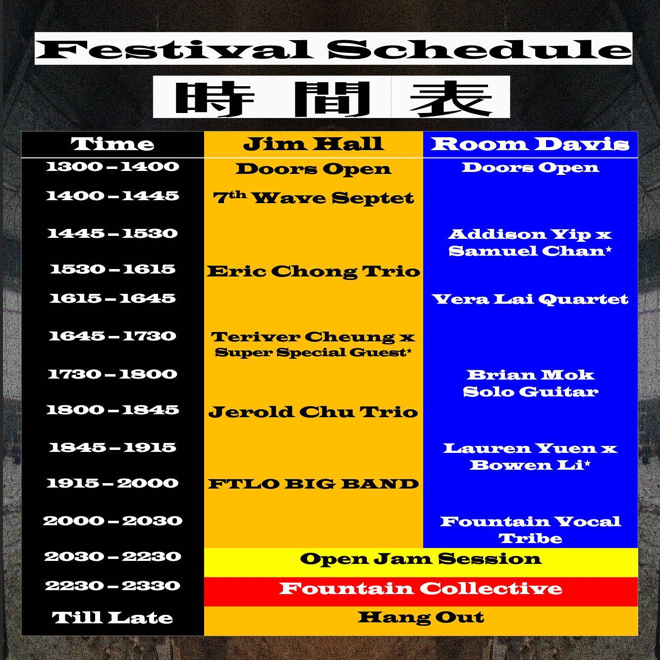 當日表演將由下午兩點進行到八點,之後有一個open jam session,歡迎大家上台玩,而最後有Fountain Collective 玩地獄free jazz 破壞大家安寧