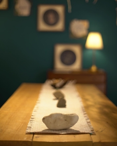 展覽期間,每個人都可以帶來一塊石頭或一件小物,代表他們放不下的事,留在 Cabinet of Stories,成為展覽的故事之一。如果可以,更希望你向 Bowie 分享石頭或小物背後的故事,作為回應,她會把你的故事製成一個獨一無二的圓形藝術作品。