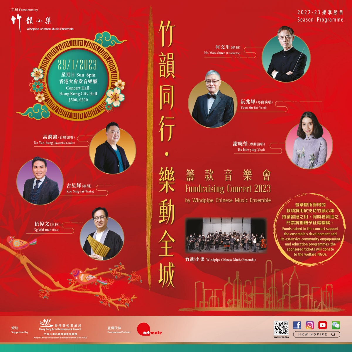 樂團在昂首邁向二十周年之際,將於2023年1月29日(大年初八)假香港大會堂音樂廳舉辦「竹韻同行.樂動全城」籌款音樂會,由著名指揮家何文川先生執棒,特邀「萬能泰斗」阮兆輝教授及「才女花旦」謝曉瑩女士擔任粵曲演唱、「萬能樂師」高潤鴻先生擔任音樂領導、竹韻小集理事會主席古星輝先生擔任板胡獨奏、音樂治療師伍偉文博士擔任節目主持。精彩節目包括《鳳閣恩仇未了情》(選段)、《歡樂年年》、《月亮代表我的心》、《永遠的張國榮》、《花梆子》、《粵舞昇平》(香港首演)、《中國節》(香港首演)等等。音樂會所籌得的款項將用於支持竹韻小集持續發展之用,同時獲贊助之門票將捐贈予社福機構。
