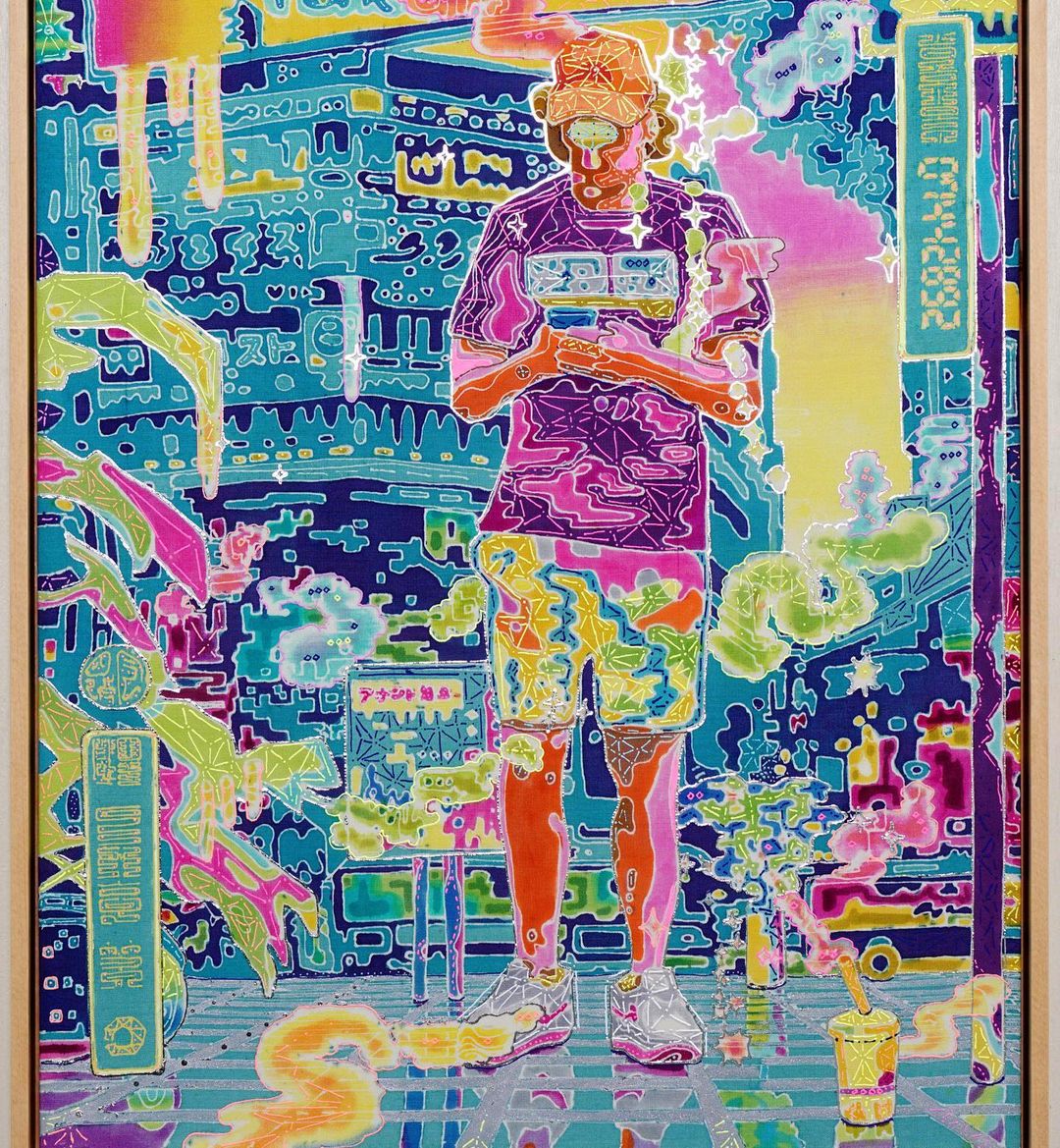 石井亨畢業於東京藝術大學染織專業,長期研究「友禪染」這種日本傳統染色的技術和歷史。他以獨特的波普藝術風格,配合傳統的友禪染技藝描繪當今各式各樣的日本社會問題,大至自然災害的後果、工薪族的悲慘生活、小至在街上丟棄的紙箱等等。絲綢的微妙質感被極致鮮豔的色彩和大膽幽默的構圖強調,同時引入了有別於傳統圖案的流行符號,呈現出迷人而壓倒性的存在感。
