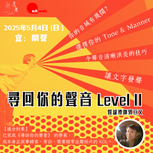 資深配音員與聲線運用導師。曾任職於TVB 配音組,HKTV 配音組,香港電台廣播劇組,有線電視宣傳部專用報幕,從事聲音工作 27 年。並從劇場訓練與言語治療兩大範疇之中,習得人體發聲之要訣。近年主力教學與培訓工作,為多間 NGO、中小學、私人機構提供聲線運用之指導。