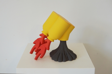 另外兩位藝術家以物料特性為主題:日本藝術家池田孝友挑戰媒介的可能性,以壓克力顏料層層堆疊、切割,再堆疊、切割......色彩萬變的顏料方格更產生視覺幻象,化身為稠密的建築群,於畫框中蔓廷展動成為生生不息的不眠都市。莫鎧靖利用3D陶泥打印機演繹陶瓷古玩,以理性及精準的方程式打造不能被控的泥素,將流動的思緒化為作品,呈現手製陶瓷無法表現的物理形態及心理形象。