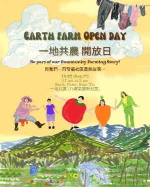 Earth Farm 的夥伴們希望在Open Day和你分享在 Earth Farm 的故事,被蚊蟲咬的咕噥、共耕時的蝦碌趣事、在田野中的「有種藝術」。當然還有落手落腳的農耕體驗與漬物品嘗,和「蟲草特攻隊」與你看雜草及昆蟲!不論住在城市還是鄉村的你,我們邀請你來發掘社區農耕故事!