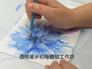 酒精墨水畫是流體藝術的一種,參加者無須任何繪畫經驗,就能享受繪畫酒精墨水畫的樂趣。此工作坊選用優質的美國及日本墨水,配合美國專用酒精墨水硬咭紙。參加者能在導師的帶領下,繪畫一款彩色作品,並會學習到三個酒精墨水畫創作的繪畫技巧。