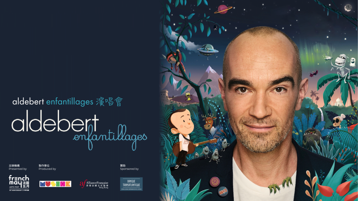 在Christophe Darlot與Hubert Harel兩位多樂器演奏家的陪同下,Aldebert來港為我們表演一場既像私人派對但又勁爆的「Enfantillages」演唱會!