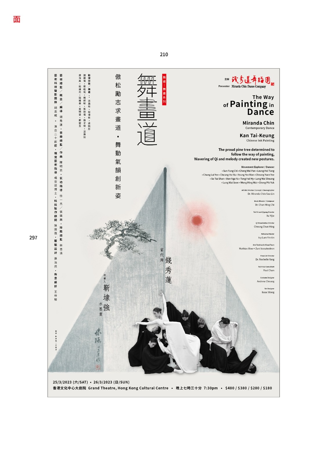 傲松勵志求畫道,舞動氣韻創新姿。香港第一代現代編舞家錢秀蓮博士,計劃以八年時間創作「舞畫」系列,首系列舞蹈結合了靳埭強博士之水墨畫風,將水墨畫之山河流動創作成畫舞,從而表達天人合一的中國文化理念。當現代舞遇上水墨畫,會有甚麼藝術效果?本次活動邀得錢秀蓮博士與靳埭強博士作嘉賓,分享他們多年來的藝術創作歷程,以及兩種截然不同的藝術形式又是如何融合共創。