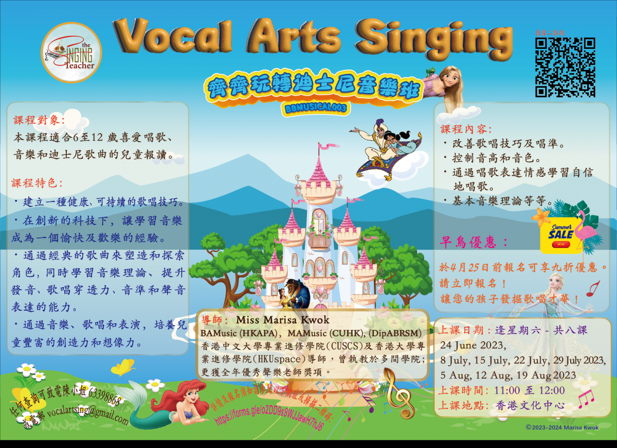 本課程適合6-12歲喜愛唱歌、音樂和迪士尼歌曲,有志增強或鞏固英文詞彙、發音及歌唱技巧的兒童報讀。