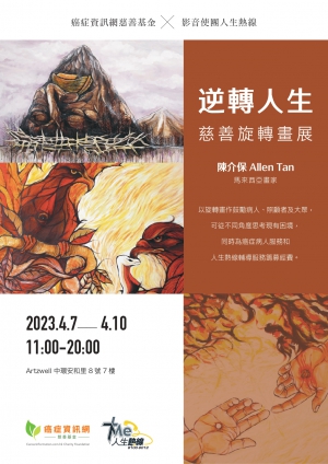 馬來西亞畫家陳介保 Allen Tan,以旋轉畫作鼓勵病人、照顧者及大眾, 可從不同角度思考現有困境, 同時為癌症病人服務和 人生熱線輔導服務籌募經費。
