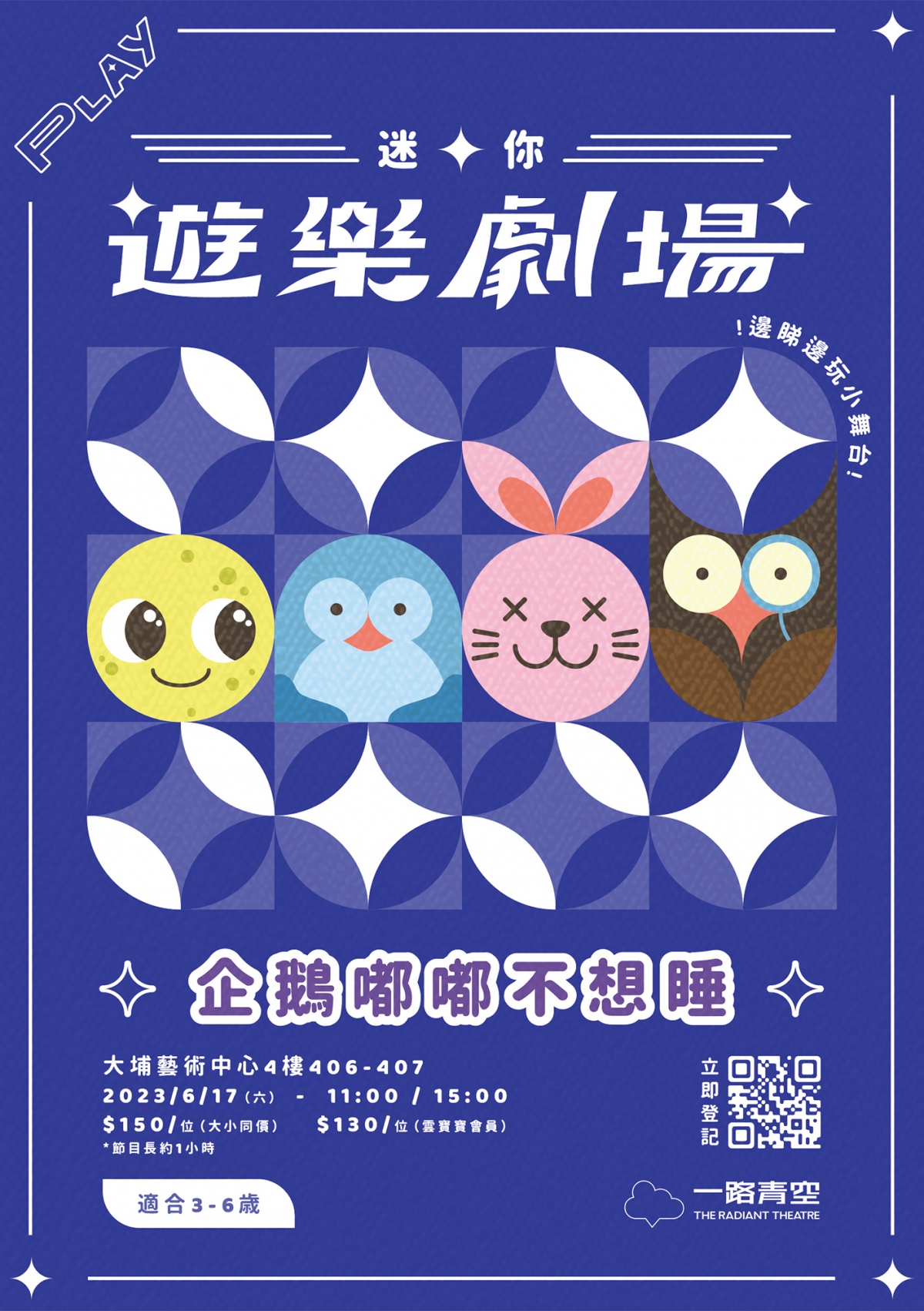 以創新形式與大家一起「邊睇邊玩小舞台!」大朋友小朋友唔再只係坐定定睇故仔,仲要走入戲劇世界親身經歷 ,一齊玩遊戲 ,化身成為故事角色,推進故仔嘅發展添 !頑皮的企鵝嘟嘟最愛玩耍,甚至天黑了也不願睡覺。這天企鵝嘟嘟漫旅於黑夜之中,經歷了一個不一樣的晚上!