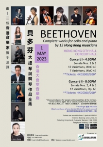 貝多芬的大提琴和鋼琴作品,其非凡、經典的地位,無容置異。由十二位活躍於樂壇及教育的本地音樂家攜手演譯其全集,實屬難得一遇。五月一日,下午4:30 及晚上8,香港大會堂音樂廳見!