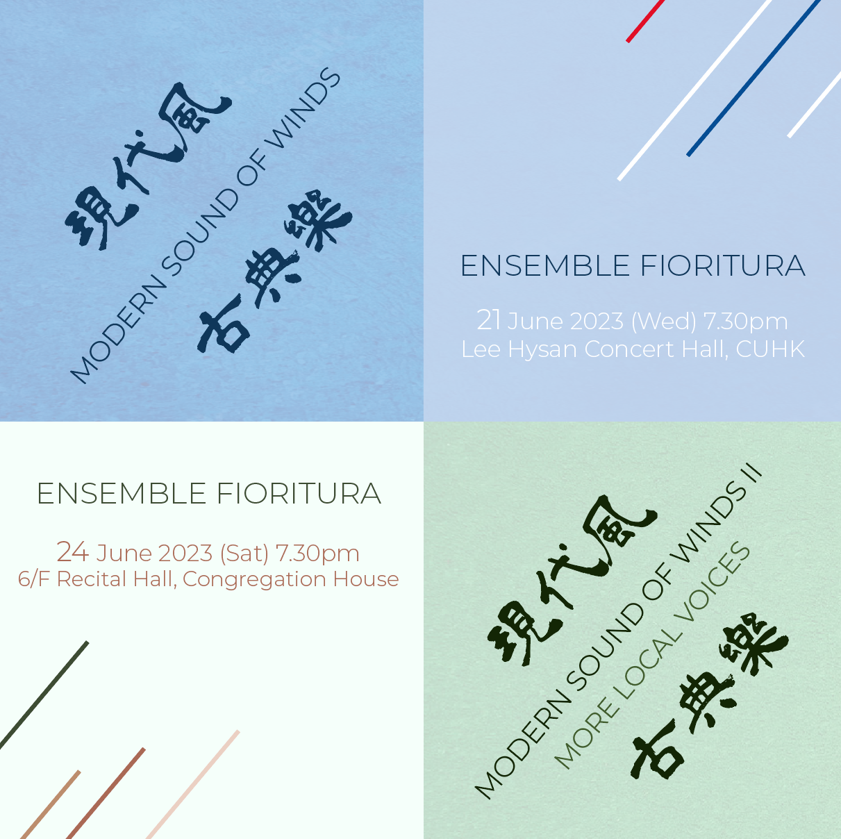 成立於2022年,Ensemble Fioritura希望發掘及推廣木管與鋼琴合奏的音樂。現代風 · 古典樂II 特意找尋更多本地聲音,包括梁柏希、黃德基及莫仲堯的最新委約作品。