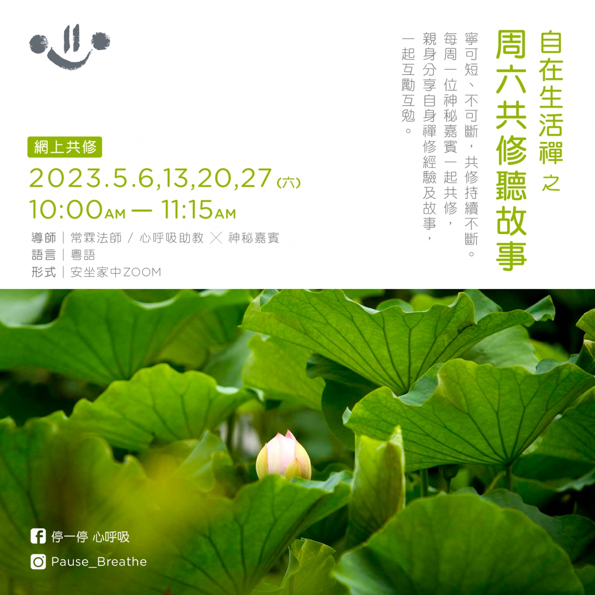 總是不捨時間過得太快?其實時間並沒有快或慢,而是完全取決於我們的心。---------------------邀請您周六早上安坐家中,由常霖法師或心呼吸助教連同每周一位神秘嘉賓,親身分享禪修經驗及故事,一起共修、聽聽故事,讓心靜下來,享受每個當下!