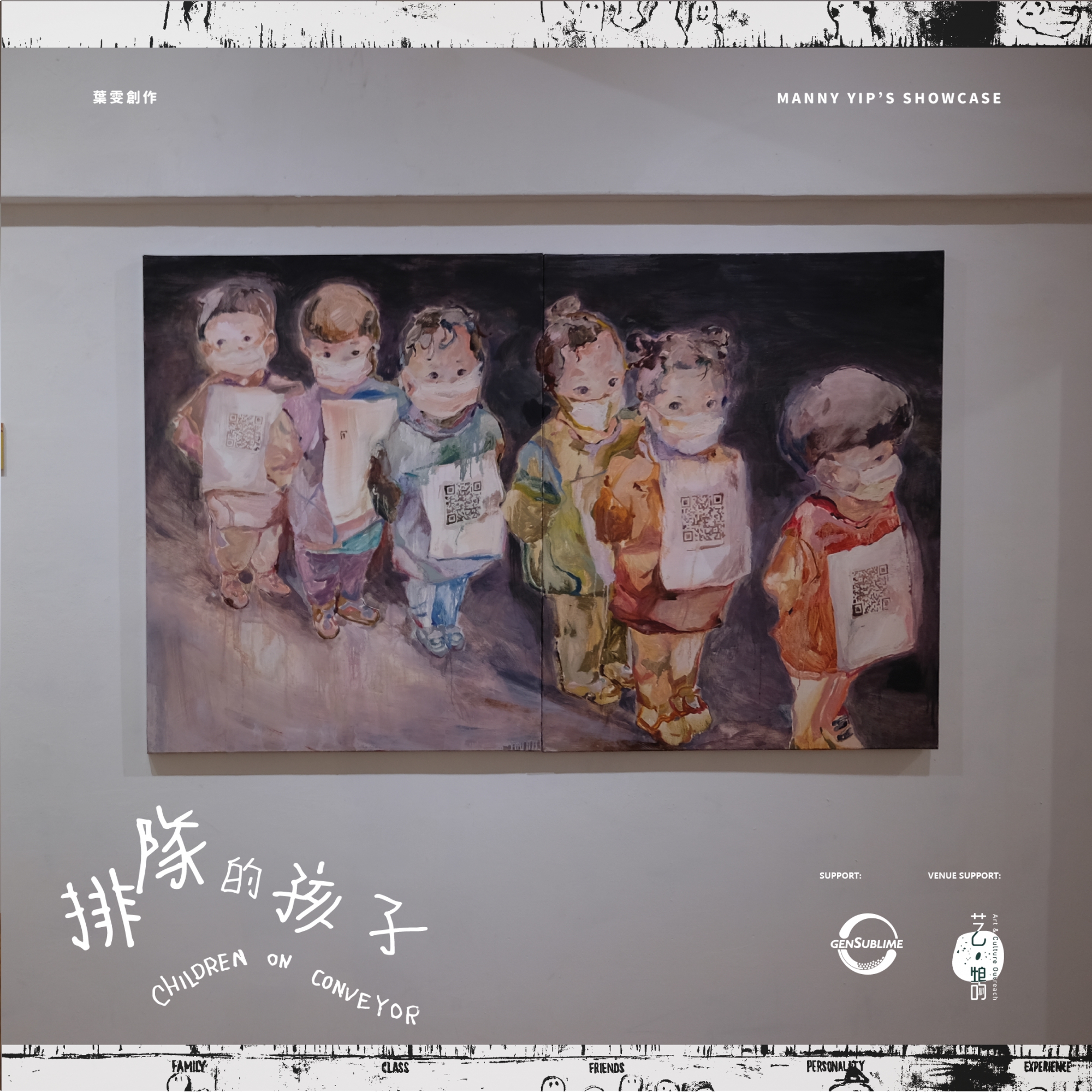 是次,葉雯描繪個人與社會彼此互動下形成的「隊伍」,作為某種秩序,重新審視個人成長經驗與社會建構之 的關係。她在過去幾年持續觀察兒童成長和疫情期間的排隊現象,藉全新作品反映社會既定秩序,並以繪畫、裝置作品探討個人成長、社會面貌等主題。